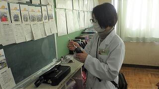 先日、学校薬剤師さんが来校し、教室の空気の検査をおこないました。学校環境衛生基準により、教室の温度は適切でしたが、二酸化炭素量が上限ギリギリでした。こまめに換気するなど、気をつけたいと思います。また、湿度も低かったため、各教室では、タオルや雑巾を濡らしてかけるようにしています。