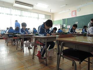 今日は、書きぞめ競書会をおこないました。1・2年生は教室でペン書き、3~6年生は体育館で毛筆でおこないました。子供たちはこれまでの練習の成果を発揮し、自信作を仕上げました。