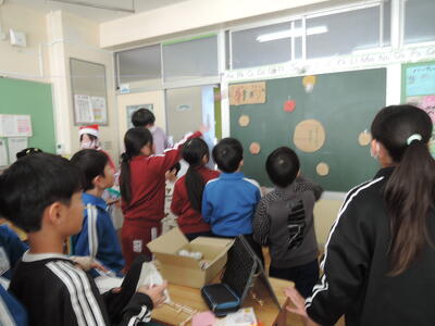 今日は、6年生が企画・運営した冬まつりが開催されました。射的やくじ引き、ボウリング、お化け屋敷などのお店が出されました。1~5年生がプログラムを片手に楽しく訪れていました。6年生は、周りの人に楽しんでもらう楽しみを経験できたと思います。お疲れ様でした!