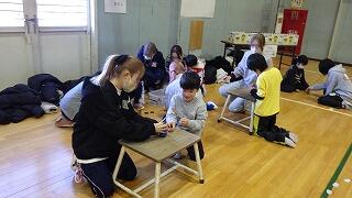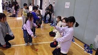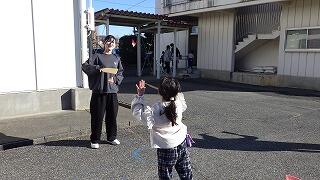 今日は、学校の隣にある埼玉純真短期大学の学生さんに来校いただき、1年生が昔遊びの交流会を開きました。1年生と学生さんとがペアになり、だるま落とし、お手玉、けん玉、コマ回し、竹馬、竹とんぼ、羽子板などを一緒に楽しみました。最後に、ダンスを披露しました。楽しく有意義なひとときになりました。ありがとうございました。
